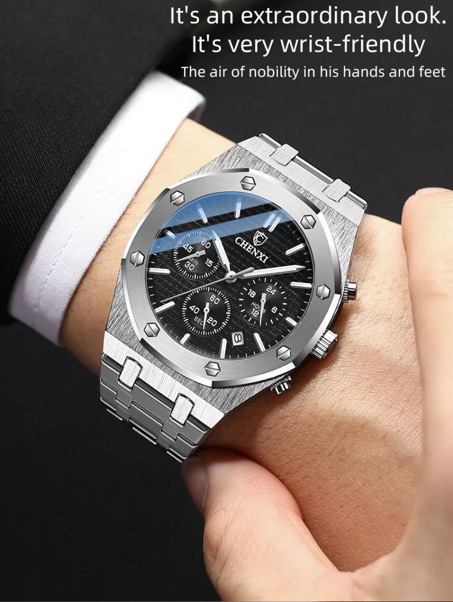 وجه زجاجي معدني مقاوم للخدش بصلابة عالية. حزام من الجلد الطبيعي الناعم مع مشبك دبوس ، يتوافق تمامًا مع المعصم ، مريح ومريح للارتداء.